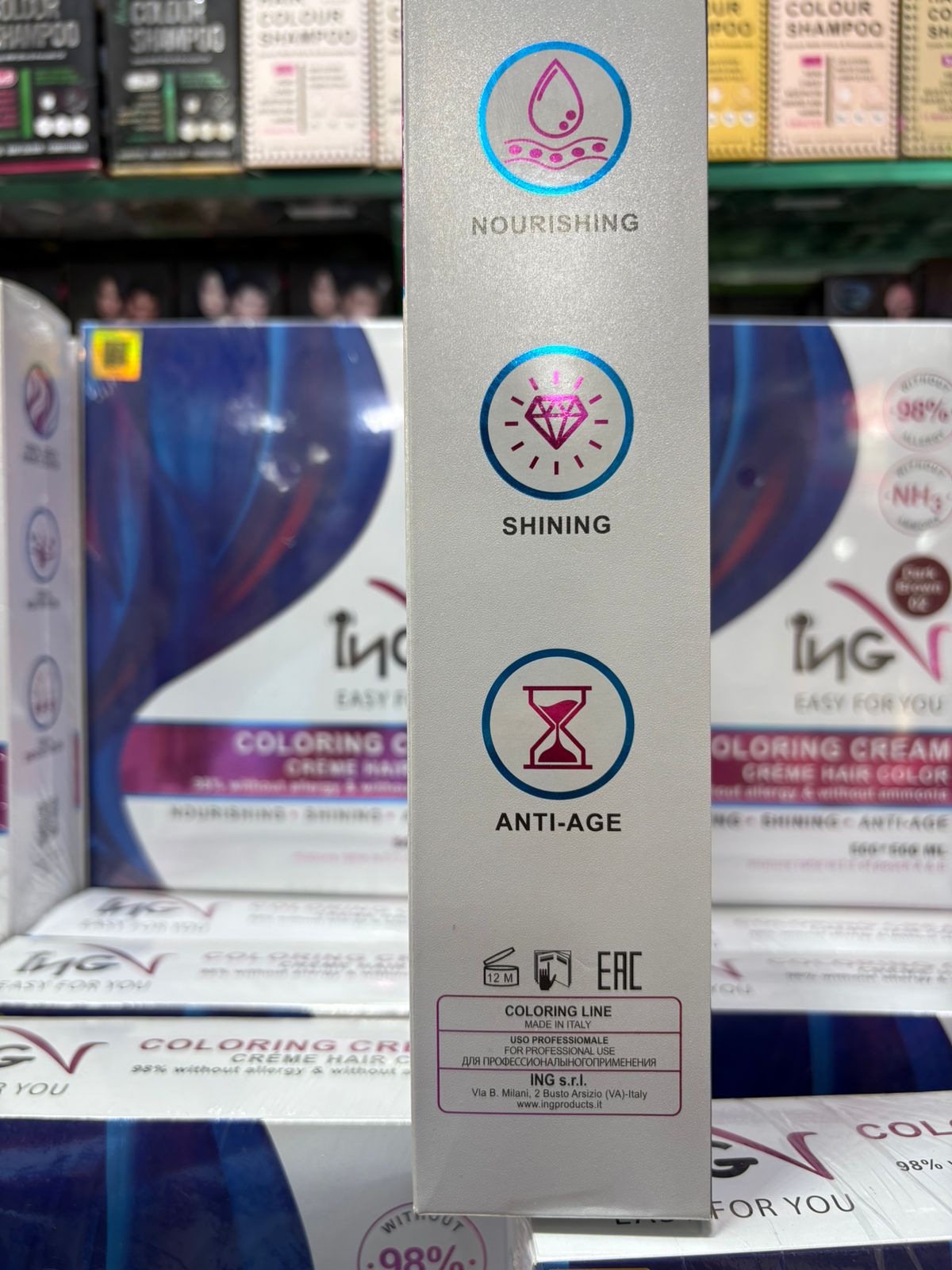 ING Coloring Cream Natural Black - 98% Allergy Free | Italy
